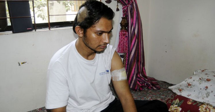 ৩১ অক্টোবর ২০১৫ সালে শুদ্ধস্বর কার্যালয়ে আহত প্রকাশক আহমেদুর রশীদ টুটুল। স্থান-ঢাকা