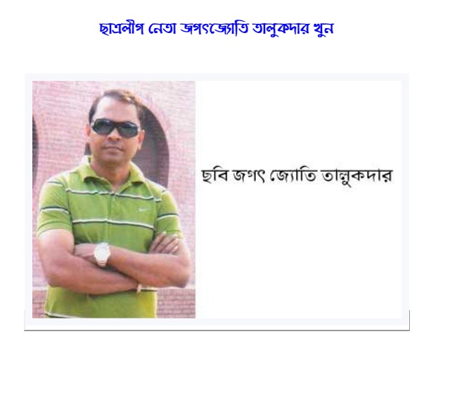 Jagat Jyoti Talukdar an activist of Ganajagaran Mancha and Blogger, had been hacked to death on 2 march 2013 at Sylhet