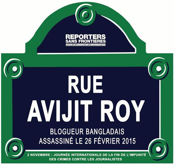 আজকে ২ নভেম্বর। আজকের এই দিনে রিপোর্টারস উইদাউট বর্ডারস প্যারিসের বাংলাদেশ দূতাবাসের রাস্তার নামকরণ করছে অভিজিৎ রায়ের সম্মানে। অভিজিৎ রায় বেঁচে আছে মুক্তচিন্তার মানুষের হৃদয়ে। যার প্রচেষ্টায় বাংলাদেশে মুক্তচিন্তার অসমাপ্ত বিপ্লব শুরু হয়। অভিজিৎ রায় অমর হোক।