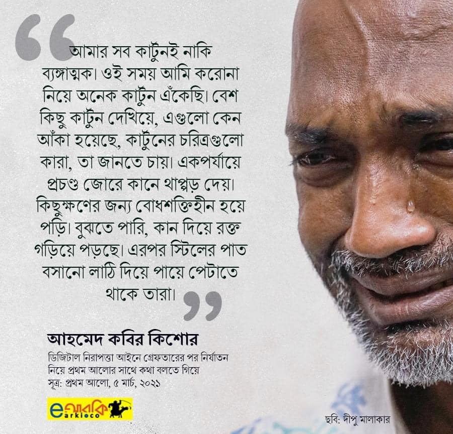 লেখক মুশতাক আহমেদ কারাগারেই মারা গেলেন। সরকার বিরোধী পোস্টের জন্য (কার্টুন ও স্ট্যাটাস) মুশতাক আহমেদের সাথে কার্টুনিস্ট কিশোরকেও গ্রেফতার করা হয়। কিশোর প্রায় ১০ মাস ধরে কারাগারে আছেন। রিমান্ডে তাদের উপর নির্যাতন করা হয়। জেলে মারা যাওয়ার আগের দিনও তার মুশতাক আহমেদের জামিন বাতিল করা হয়। সরকার প্রত্যক্ষভাবে মুশতাককে মৃত্যুর দিকে ঠেলে দেয়।