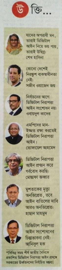 তিনি আরও বলেন, ‘ডিজিটাল নিরাপত্তা আইন-২০১৮ চিন্তা ভাবনা করেই করা হয়েছে। অত্যন্ত স্বচ্ছতার সঙ্গে এ আইন করা হয়েছে। আগের আইসিটি অ্যাক্টটি বিএনপির সময়ে করা ছিল। যেখানে অনেক বিষয় অস্পষ্ট ছিল। নতুন আইনে বিষয়গুলো আরও স্পষ্ট করা হয়েছে।’