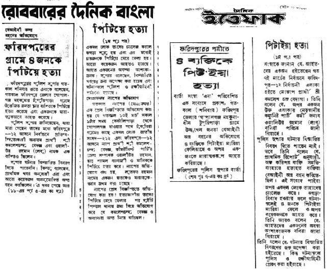 কেন এই হত্যাকাণ্ড? এই চার কমিউনিস্ট মুক্তিযোদ্ধাকে যে মাসে হত্যা করা হয় সেই ১৯৭৩-এর মার্চ মাসেই রাষ্ট্রীয়ভাবে হত্যাকারী হেমায়েতকে বীরবিক্রম উপাধি দিয়ে পুরস্কৃত করে। কোন সন্দেহ নেই অনেক বিতর্কিত ভূমিকা সত্ত্বেও হেমায়েত মুক্তিযোদ্ধা ছিল। চার শহীদের মধ্যে ওয়ালিউর রহমান লেবু ৮ নম্বর সেক্টরের পলিটিক্যাল এ্যাটাচি ছিলেন। সম্মুখ যুদ্ধে অংশ গ্রহণ করেছেন। আর কমলেশ বেদজ্ঞ ছিলেন পচিশটিরও বেশী সফল যুদ্ধে অংশগ্রহণকারী অসম সাহসী এক লড়াকু মুক্তিযোদ্ধা। বিষ্ণুপদ কর্মকার ও রামপ্রসাদ চক্রবর্তী মানিকও মুক্তিযুদ্ধের সম্মুখ সমরে অংশ নিয়েছেন। কিন্তু তার পরেও হেমায়েত এই চার মহান কমিউনিস্ট মুক্তিযোদ্ধাকে নৃশংসভাবে হত্যা করেও রাষ্ট্রীয় পুরস্কার পেল। এর অর্থ কী দাঁড়ায়? …ওয়ালিউর রহমান লেবু ও কমলেশ বেদজ্ঞ গোপালগঞ্জ অঞ্চলে শক্তিশালী বাম সংগঠন গড়ে তুলেছিলেন। স্বভাবতই শাসক শ্রেণি তাদের উপর সন্তুষ্ট ছিলো না। শাসক শ্রেণিকে তারা গণতান্ত্রিক পন্থায় নির্বাচনের মাধ্যমে চ্যালেঞ্জ জানিয়েছিল। তাদের জনপ্রিয়তায় শাসক শ্রেণি ভীত ও ঈর্ষান্বিত হয়ে পড়েছিলো। এটি ধারনা করা হয় ওয়ালিউর রহমান লেবু ও কমলেশ বেদজ্ঞের অসম্ভব জনপ্রিয়তাই এই হত্যাকান্ডের প্রাথমিক কারণ। অন্য একটা গুরুত্বপূর্ণ ব্যাপার ছিলো কমলেশ বেদজ্ঞের ডায়রিতে মুক্তিযুদ্ধকালীন ঘটনার বর্ণনা ছিলো এবং যুদ্ধকালীন রাজাকার ক্যাম্পের পতন ঘটিয়ে প্রাপ্ত সম্পদের তালিকা ছিলো। এই সম্পদ হেমায়েতের কাছে রাখা হয়েছিলো। মুক্তিযুদ্ধের পরে যাদের সম্পদ তাদের কাছে ফিরিয়ে দেয়ার জন্য কমলেশ বেদজ্ঞ বারবার অনুরোধ করেছেন। কিন্তু হেমায়েত রাজী হয়নি। কমলেশ বেদজ্ঞ সম্পদ জনগনের কাছে ফিরিয়ে না দিলে প্রাপ্ত সম্পদের তালিকা জনগনের কাছে প্রকাশ করার চ্যালেঞ্জ প্রদান করেন। রাজনৈতিক-সাংগঠনিক ও ব্যক্তিগত লাভের আশায় শাসক শ্রেণির কোন না কোন অংশের সমর্থনে খুনন হেমায়েত চক্র মুক্তিযুদ্ধকালীন গচ্ছিত সম্পদ আত্মসাৎ করা এবং মুক্তিযুদ্ধকালীন অপকর্ম ঢেকে রাখার জন্য এই নির্মম ও পাশবিক হত্যাকান্ড ঘটায় বলে মনে করা হয়।