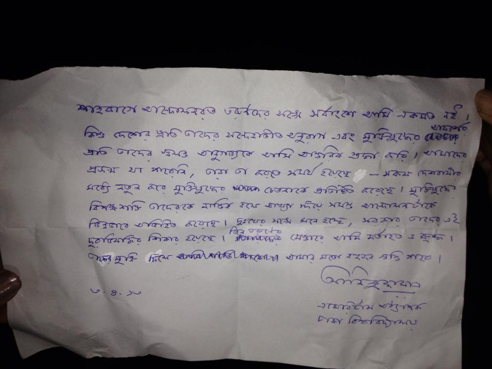 ২০১৩ সালে শাহবাগ আন্দোলনের সময় তিনজন ব্লগারকে গ্রেপ্তার করা হলে আমাদের এক প্রতিবাদ সমাবেশের আগে স্যার আমাকে এই আন্দলনে তাঁর সমর্থন ব্যক্ত করে এই চিঠিটি দিয়েছিলেন। এটি পরে আমি স্যারের পক্ষে পাঠ করেছিলাম-জোবাইদা নাসরীন