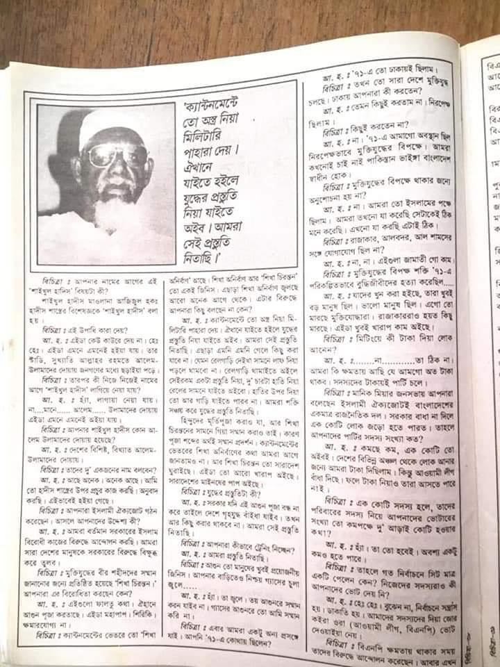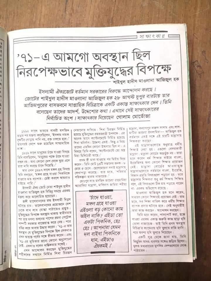 হেফাজত ইসলামের নেতা মামুনুল হকের পিতা আজিজুল হকের দেওয়া মুক্তিযুদ্ধ বিরোধী সাক্ষাৎকার। সাক্ষাৎকারটি সাপ্তাহিক ‘বিচিত্রা’ পত্রিকার ১৯৯৭ সালের ৫ সেপ্টেম্বর সংখ্যায় প্রকাশিত হয়েছিলো।