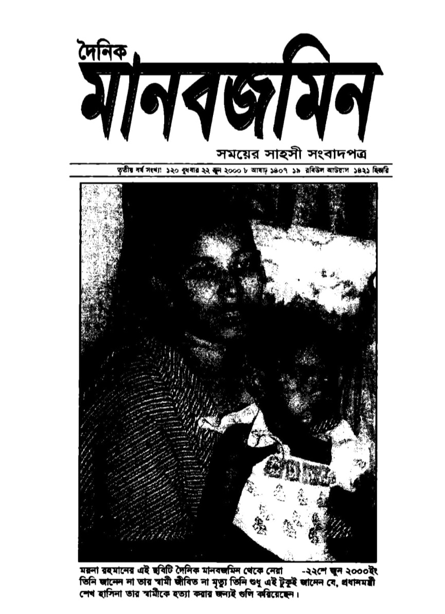 অতীতে আমাদের গণমাধ্যম কতোটুকু সাহসী ছিল তা এই এক ছবিতে প্রমাণ হয়। “প্রধানমন্ত্রী তার স্বামীকে হত্যা করার জন্য গুলি করিয়েছেন” এটি প্রকাশ্যে লেখার সাহস পায়।