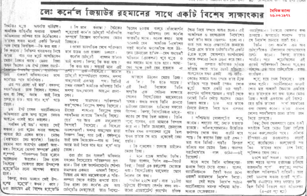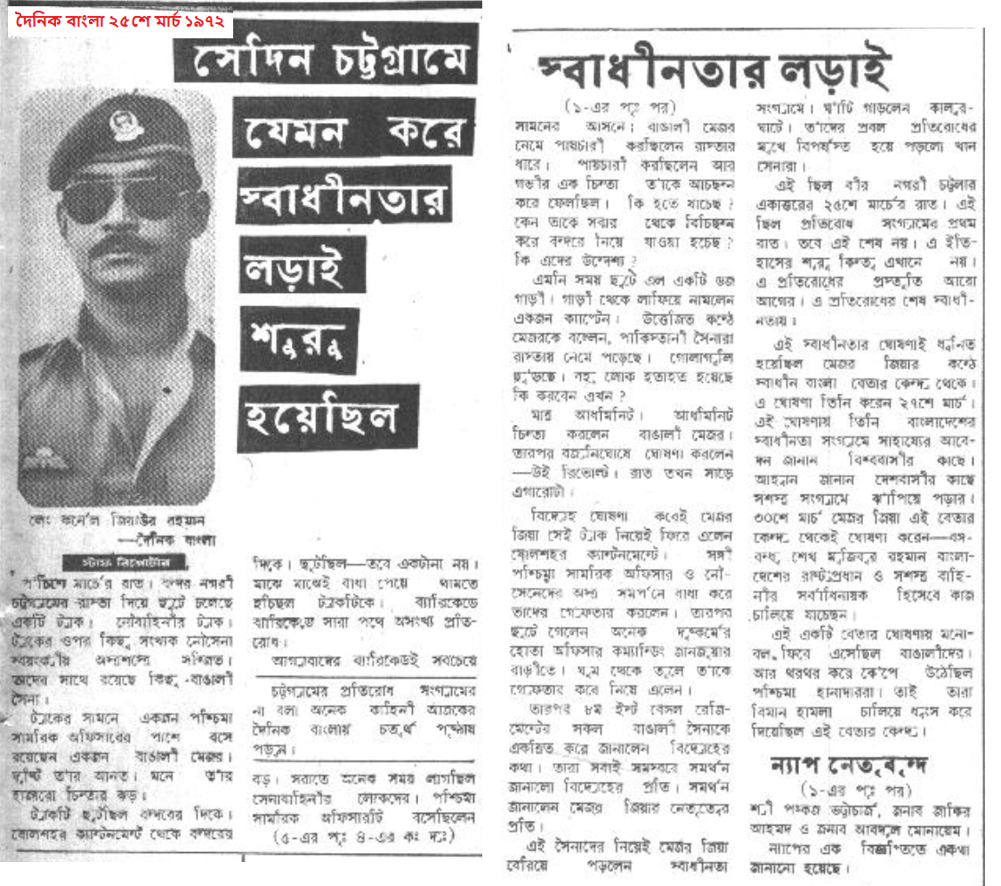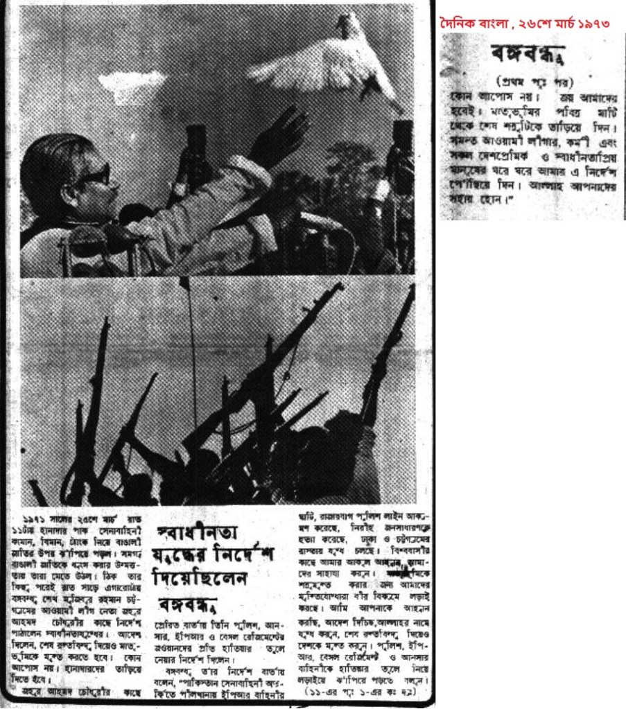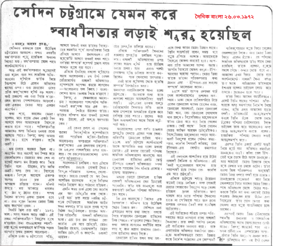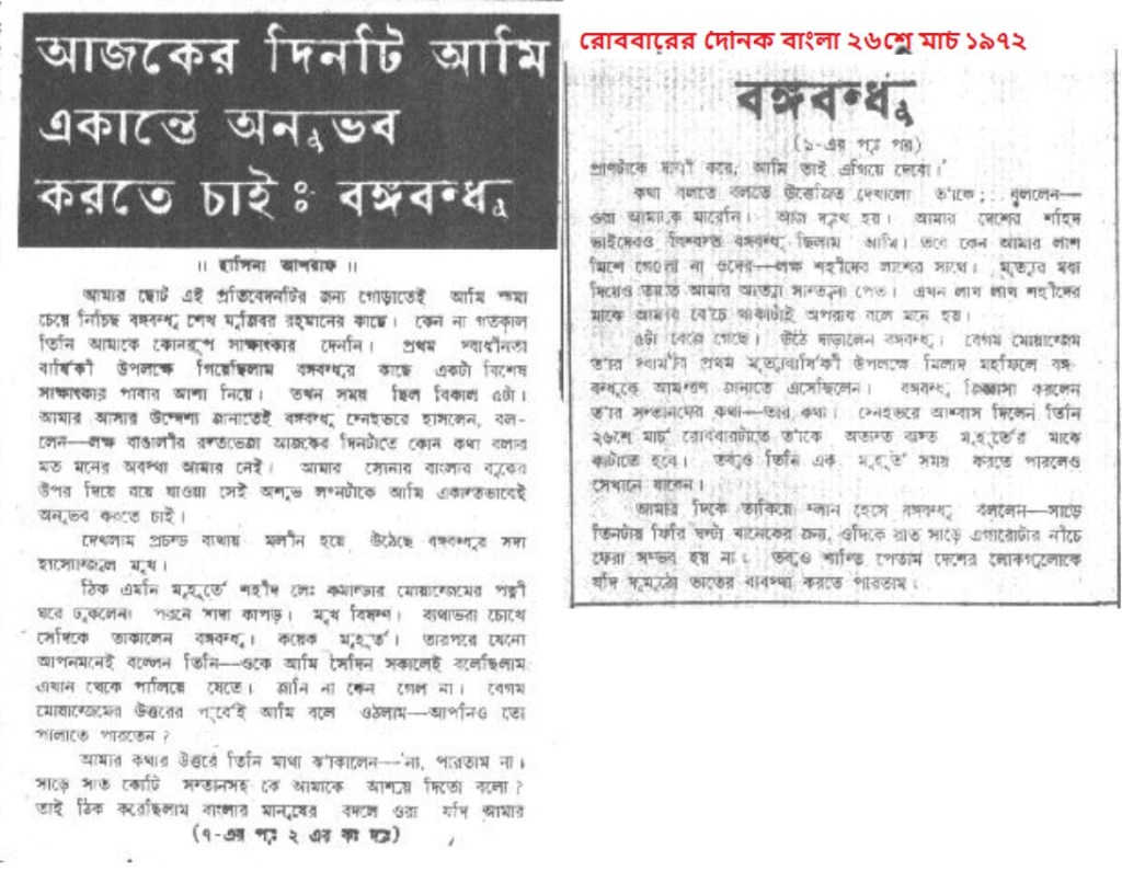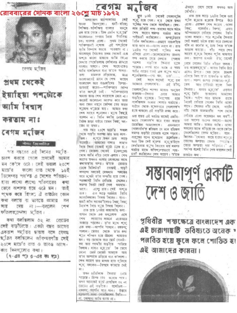 রোববারের দৈনিক বাংলা, ২৬শে মার্চ ১৯৭২